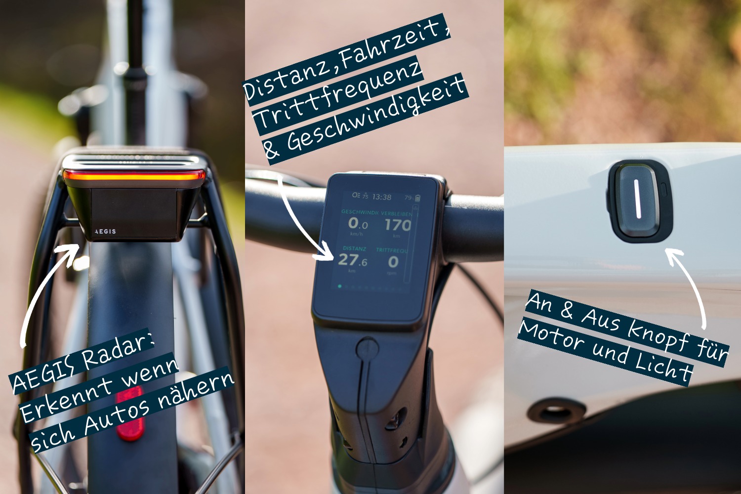 | Aegis Radar | Erkennt Fahrzeuge bis 120 Meter hinter dir. Du siehst im Display, wie schnell sie sich nähern. Falls ein Auto extrem schnell anrauscht (über 60 km/h Differenz), leuchtet das Display rot. | Macht die Fahrt deutlich sicherer, gerade für Fahrerinnen und Fahrer auf Landstraßen sehr hilfreich. |