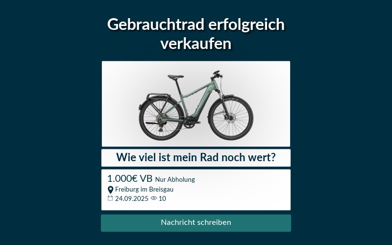 Außerdem empfehlenswert, um den konkreten Marktwert zu ermitteln: Aktive Marktforschung. Mithilfe der Analyse aktueller Angebote vergleichbarer Modelle kristallisiert sich meist sehr schnell eine gute Bewertungsgrundlage heraus. Zur Recherche eignen sich beispielsweise Plattformen wie Kleinanzeigen oder Buycycle. Was außerdem hilfreich sein kann: Alle gesammelten Informationen zum Zustand und den Komponenten des Rades in eine KI wie ChatGPT eingeben und den Restwert einschätzen lassen.